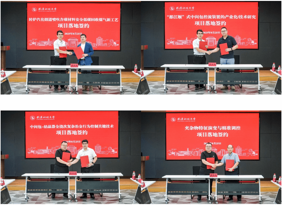随后,赵占山、齐士兵分别与周建安、金焱、张华、郑万签署科研项目合作协议;佘春雨与陈超峰共同为“武科大-晋钢控股产学合作创新中心”揭牌;杨魁与张洪儒共同为“大学生实习实践基地”揭牌。