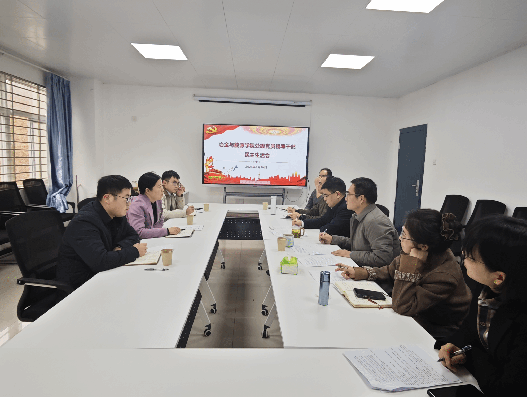 1月16日,冶金与能源学院召开2025年度领导班子民主生活会。民主生活会第一督导组组长、校党政办公室主任傅江浩到会指导并讲话,督导组成员陈亮、何金参会。学院领导班子全体成员参加会议,会议由学院党委书记杨魁主持。